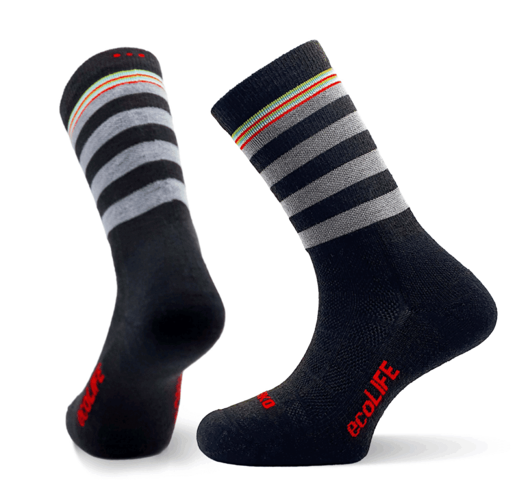 TEKO eco LIFE PRISM 3.0 Merino Medium Half Cushion Socks are responsibly made socks for your everyday active lifestyle made from our merino-synergy yarn. Whether you are cycling to work, going to the gym, skateboarding with your friends, mountain-biking or just wearing them for work, this is a true everyday multi-sport sock. It is very comfortable and cushioned with a stretch which envelops your foot. You will love this sock!